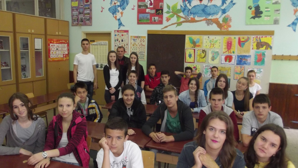 Ученици  8/2 одељења искористили су прилику да још једном, последњег дана редовне наставе у основној школи, седну у клупе и сликају се са свијим одељењским старешином Мудринић Драганом.